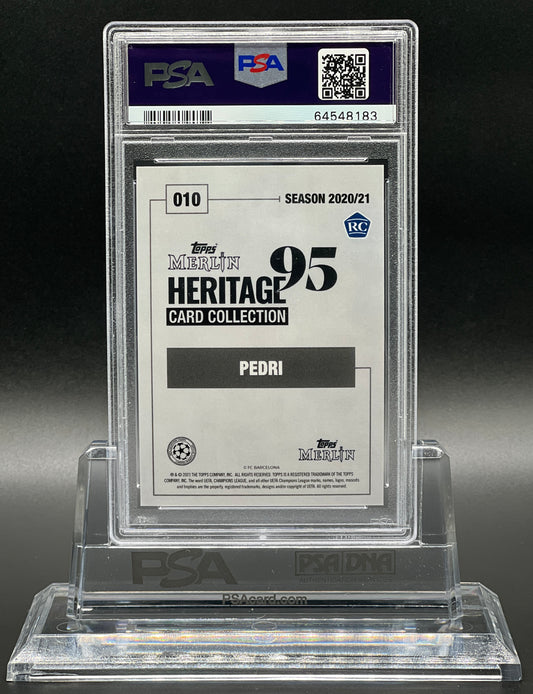 Topps Merlin 95 Heritage UCL 2020-21 Pedri Rookie /49 Jersey Numbered PSA 9 Mint