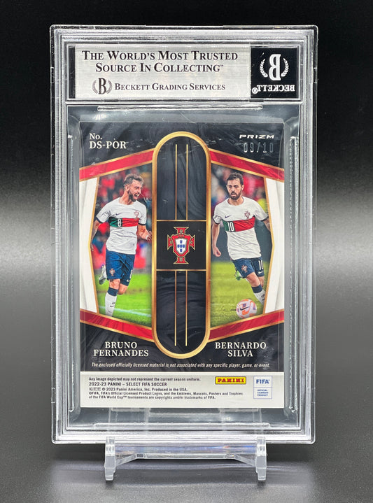 Panini Select FIFA 2022-23 Bruno Fernandes Bernardo Silva Dual Patch /10 Gold Prizm BGS 6.5 Excellent - Mint+