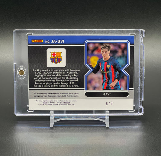 Panini Obsidian 2022-23 Gavi Auto Patch 6/6 Orange Electric Etch Jersey Numbered FC Barcelona