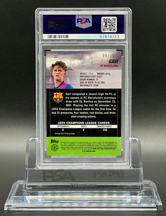Topps Museum UCL 2021-22 Gavi Rookie /25 Ruby Jersey Numbered PSA 10 Gem Mint