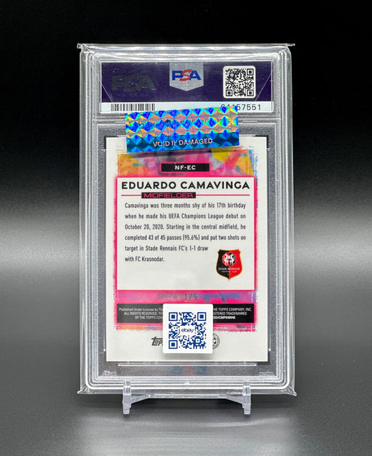 Topps Chrome UCL 2020-21 Eduardo Camavinga Rookie 1/5 Neon Red PSA 10 Gem Mint
