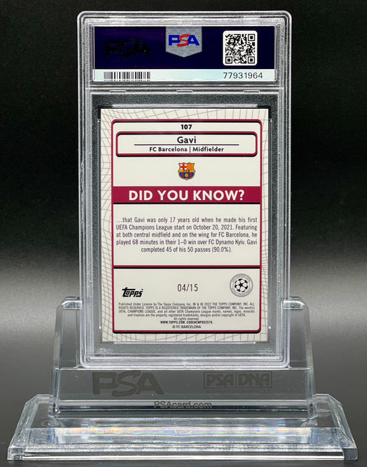 Topps Merlin Chrome UCL 2021-22 Gavi Rookie /15 Purple Wave PSA 10 Gem Mint