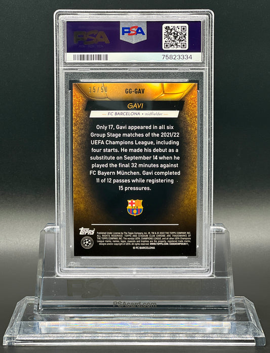 Topps Stadium Club Chrome UCL 2021-22 Gavi Rookie /50 Gold Refractor Glimpses of Gold PSA 10 Gem Mint